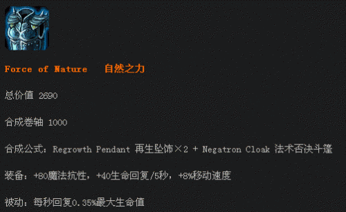 下来再出一件自然之力吧魔法抗性提起来,再加上生命恢复,你会发现就算是虚血了随便找这个树林子躲起来,马上就会把生命值恢复的差不多,之后又能加入战斗了。
