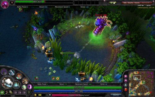 小兵获得的金钱比DOTA少了,只有15-25之间。英雄死亡不掉金钱(DOTA掉),额外多两个可以选择的辅助技能,如传送,加血,保塔等。地图变小了,使得战斗更激烈,强化了英雄之间的战斗。