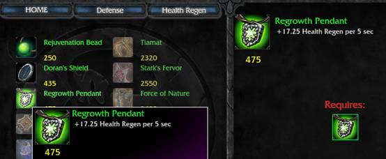 Regrowth Pendant 再生坠饰 价值 475 装备:+17.25生命回复/5秒