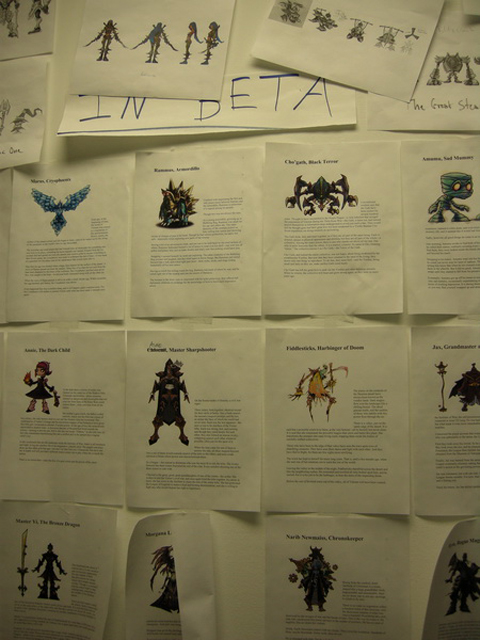 来看下Riot Games美国办公室的“墙角文化”——形态各异的英雄和野外怪物设计图纸,都被密密麻麻地贴在墙壁上了,这些设计图纸和英雄简洁点缀了办公室一角,成了办公室内的一道美丽风景线。
