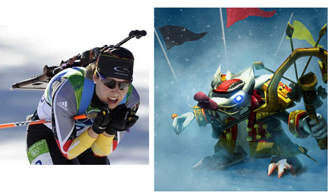 《英雄联盟》超人气英雄瘟疫之源-图奇,穿上了华丽的德国队服,射击是它的拿手好戏,更是为德国队增添了气势。在本届冬季两项女子12.5公里集体出发赛中,德国名将鲁纳尔继追逐和竞速赛分获一金一银后,再度荣获此项金牌,成为温哥华赛场上的双冠王!