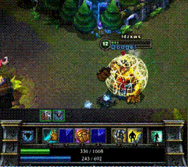 记得当初这个技能能对密探的地雷R有伤害(同时的还有冰弓的W)。现在改了,不过还是能电地雷,不过没有伤害了 = =!