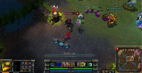 小小的感慨一下,关于这个技能我是它的成长过程的见证人。当初这个技能不能隔着障碍物拉人,但是相对的距离相比现在要远点。后来修正的这 个BUG,或者说是改良了。后来加快回收手臂的速度,但是效果依然让官方不满意,然后是现在这个样子,回收手臂的时候抓住的单位会晕眩,时间不长,就是拉到你身边过程的时 间,大约0.5S的样子。