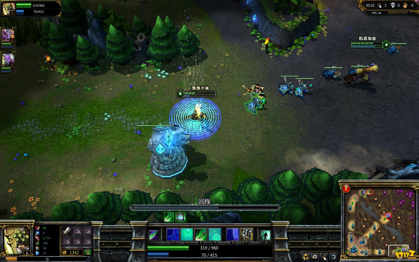 LOL与DOTA不同,LOL回城快捷键是B,无CD限制,随时可以选择回城,施展时间8秒,但传送需要召唤师【传送】技能才行,传送目标可以是建筑物或小兵,相当于DOTA中的飞鞋,CD时间300秒。
