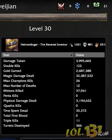 然后就是 推线 LOL里 谁推线比较厉害?主母、小炮等都是推线能手,但你叫他们和大头比还是差了点。 我大头中单70%的几率会在10级前拆掉对面的中塔。就像我那篇 攻略里写的一样,没有任何英雄能抵挡带有蓝buff大头的推线。40%的减CD上限,无限的魔法 ,技能无限用,所有技能都不需要考虑什么冷却一好就用就可以了 这样的大头能不强大吗? 大头的技能能打到别人,别人却碰不到你(或者说不敢一个人顶着3个炮台过来打了),他们的兵线 在你的3个技能下 几乎刚出塔就被灭了,你只需轻松的将 炮台放在塔下就可以了(其实这点最危险,大家放塔时小心点,不过一般对面都没血了),然后2-3波兵后轻松收塔 。