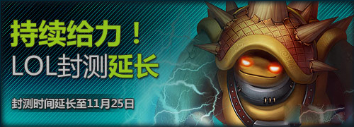 《英雄联盟》给力封测原定于2010年11月15日结束,但很多玩家反应希望能在国服体验到最新英雄LeBlanc(中文名待定),我们在各大媒体的LOL专区也看到高达93%的玩家期望国服更新,因此经项目组讨论决定在不影响内测进度的前提下,我们将封测延长至11月25日,并会在下周更新LeBlanc版本,感谢大家对LOL的厚爱,LOL的内测预计将在12月开启,本次封测中召唤师等级达到30级,或者ELO排名2000名以内的玩家将直接获得内测权限!