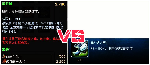 远行鞋:拥有最高的速度加成以及强大的传送功能的鞋子,是DOTA里推塔英雄的最爱,缺点是不增加属性。