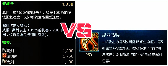平滑的合成线,强大的溅射攻击,狂战斧和提亚马特都是物理PDS们逆风时必出的装备,而提亚马特的溅射加成对于远程攻击也是有用的,喜欢远程英雄的玩家们,试试提亚马特吧,感受一下狂战斧的威力。