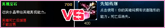 使你的英雄有侦查隐形的能力,真视宝石要占用物品栏,先知药剂属于消耗品,是吃进肚子的药水。
