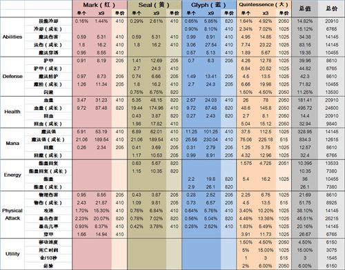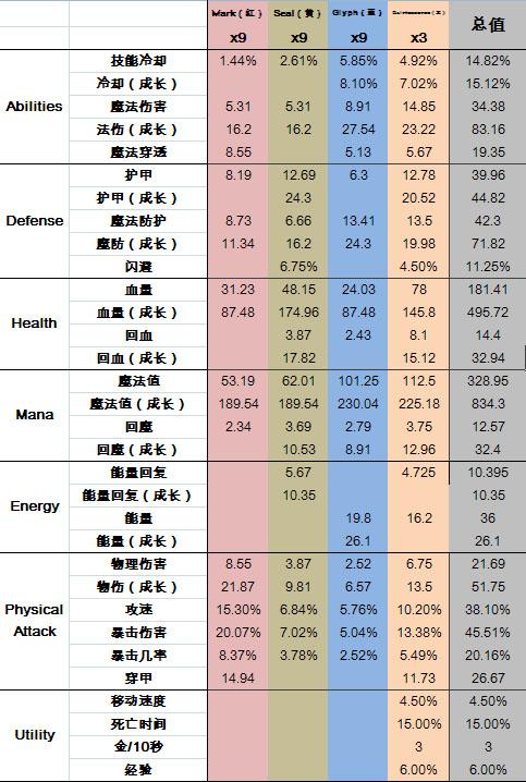 yuziduo的符文统计表LOL Runes_v1.0.0.110.xls,可用于国服,可以让我们细细研究如何配符文