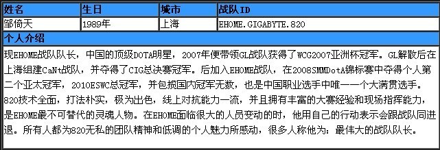 2007年10月,成立EHOME.DotA分队 EHOME战队是中国资格最老的DOTA职业战队,战绩辉煌。