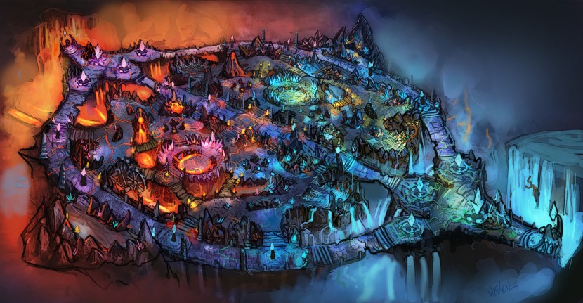 上古时期的熔岩活动在这里形成了一个巨大的洞穴,联盟现在把这里当作自己召唤英雄竞技的舞台,其目的是解决德玛西亚和那可苏斯之间愈发频繁的纠纷。