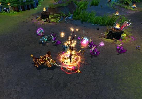 分身合击:悟空用他的筋斗云冲向敌方目标,如果目标附近有敌方英雄则悟空会最多分出两个分身来攻击目标,分身造成物理伤害。