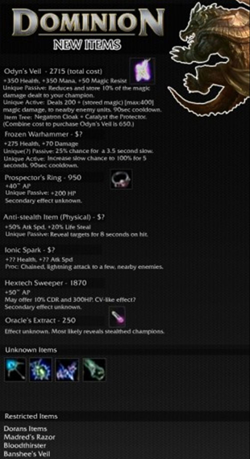 这次将要新添加的道具大多是附带特殊效果的,算是弥补目前LOL主动道具较少的一个补丁吧