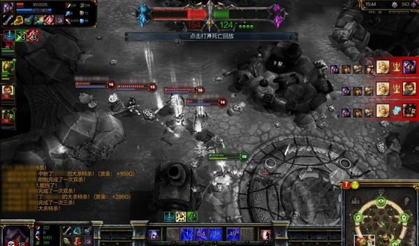 屏幕右边是击杀和助攻信息显示面板。