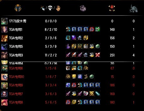 下面是这场比赛双方的ban选人情况和对战名单(因为是在专门的比赛服务器上进行的比赛,选手账号由17173提供,全英雄全皮肤)