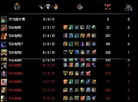 下面是这场比赛双方的ban选人情况和对战名单(因为是在专门的比赛服务器上进行的比赛,选手账号由17173提供,全英雄全皮肤)