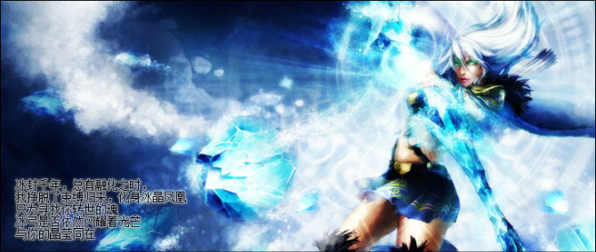 冰晶凤凰。在我眼里是一个有点像神兽那样的感觉。总觉得,背后应该有点什么的故事吧。 我选择了艾希,冰弓下的冰鸟是不是很带感呢?希望大家能够喜欢。