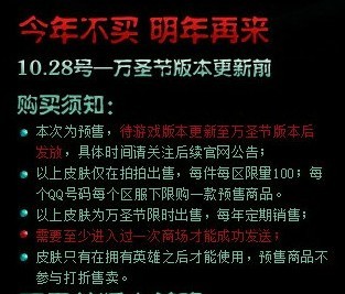 本次万圣节特卖皮肤活动时间有限,这次不买据消息透露只能等到明年万圣节了