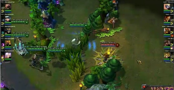 Ehome的阵容配置比较新颖,放逐之刃和沙漠死神都是比赛中很少出现的冷门英雄。Sman战队的阵容倒是比较常规,其中有一名队员因为帐号问题,所以借用了直播解说“楼主”的ID。Ehome一上来就五人抱团来到蓝buff附近,卡牌先手晕中EZ,而EZ忙乱中也没有用E逃生,直接交出了闪现。