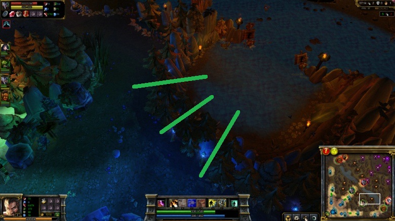 【中下河道】河道处的位置比较重要,因为这里是gank和团战密集的地方,利用好以后会让法外显得非常犀利: