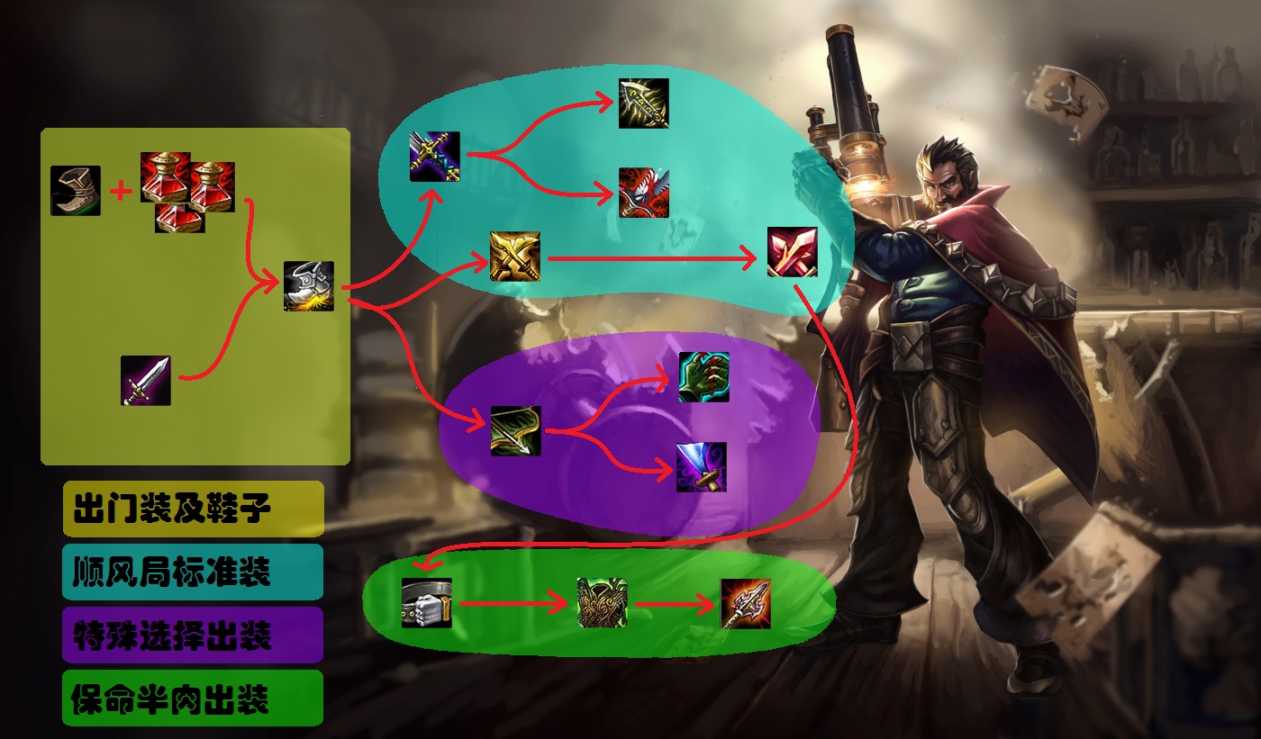 他是目前版本的下路线霸,FD争夺热门人选,强力核心ADC,卡牌曾经的好基友。 下面将系统的介绍男枪的一些基础知识和打法