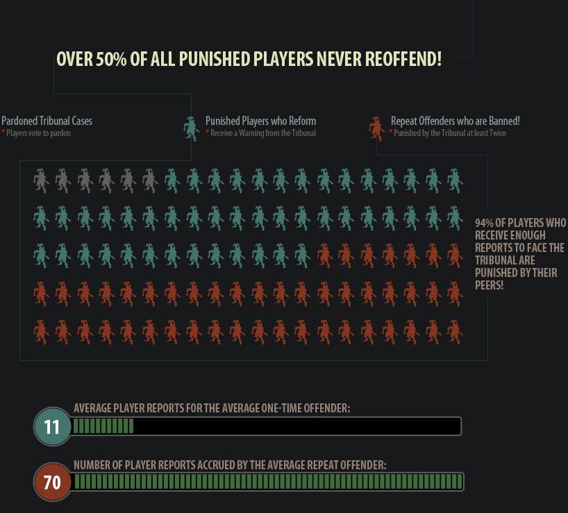 而且在所有被举报的玩家中,有94%的违规玩家遭到了惩罚,其中50%的帐号遭到的是永久封停的惩罚。