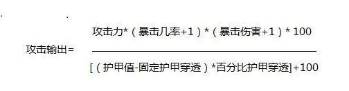 首先你需要了解的是英雄攻击所产生的平均输出。它会受到一些不同因素的影响, 总而言之这就是伤害输出的定义。攻击力, 暴击几率 , 暴击伤害以及护甲值/对敌人照成的穿甲。把这些因素综合在一起就得到了下面这个公式: