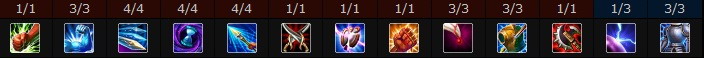 混线的话,我1级会学Q,1级很需要切入和逃跑技能。接下来各学一级W和E,然后优先加满W,伤害最高。接下来学Q提高伤害,最后学E,因为E的眩晕和躲闪时间不变,伤害提升也不如其他两个技能。