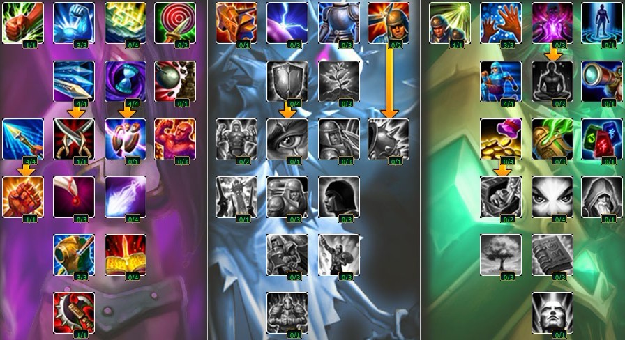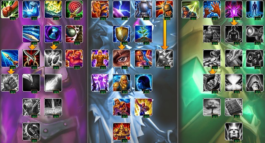 说明:如果你想成为一个tank,这是另一种选择。一般来说,如果对线对你来说有难以置信的难度你才要选择这种点法,但是确实非常罕见。我没有点荣誉护卫和灵动因为它们太微不足道了。然后我投入9点到攻击系,出了10%护甲穿透。
