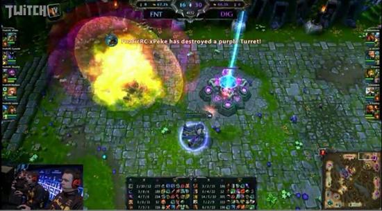 到了中期,比赛更加激烈,Fnatic先是NOC抢到大龙,并且利用地形优势,完美地配合风女给卡牌,Ashe,凯南提供了良好的输出环境,打赢了团战,并成功破掉两路。DIG的形势岌岌可危。但是35分时,Fnatic贪恋小龙,被Dignitas完美的一波反扑,瞬间杀掉了卡牌跟Ashe,几乎形成了团灭。