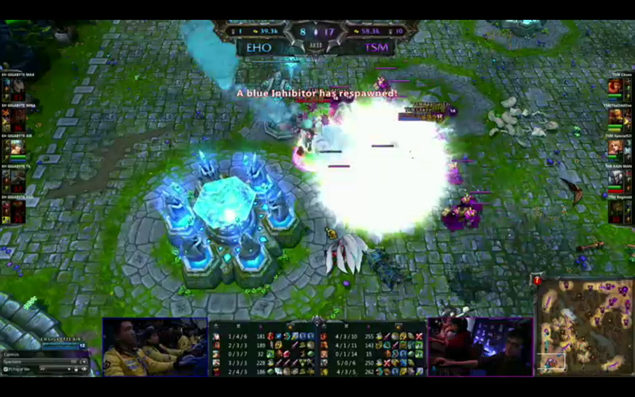 B组第五场比赛TSM vs EHOME,没什么好说的,这一场个人实力差距太大了,TSM的战术也毫无亮点,更像是一年前的DH套路一样,相对于其他队伍的阵容选择已经老套了,对付EH还好,要是其他队伍,估计这套阵容真跪。