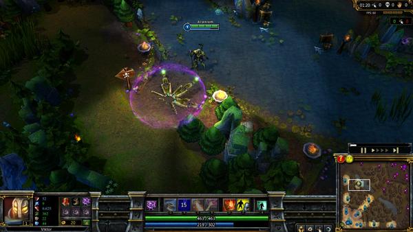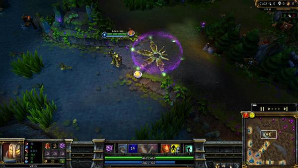 说明:这是维克托的核心技能,也是它伤害的大头。这个技能的用法类似于兰博的大招,如果从边缘开始施法的话,这个技能的射程很不错。你可以用它在对线期赶走对手,或是用它骚扰。