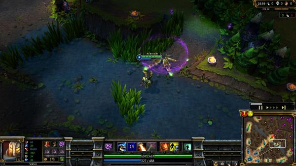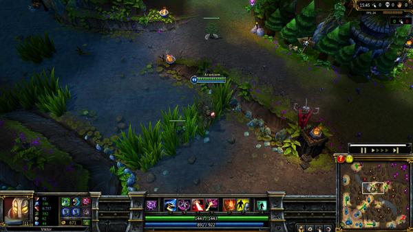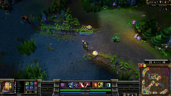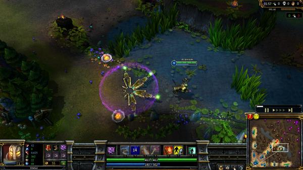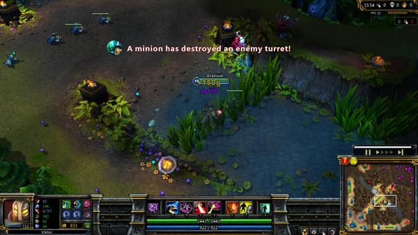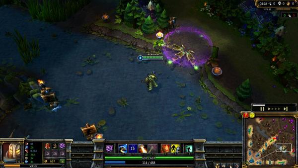 推塔的时候和之前差不多,唯一区别是在这个时间点,如果你在骚扰的时候给抓了,基本游戏就结束了。你的骚扰能力依然强大,输出还是非常可观,但维克托的致命伤就是腿太短了。