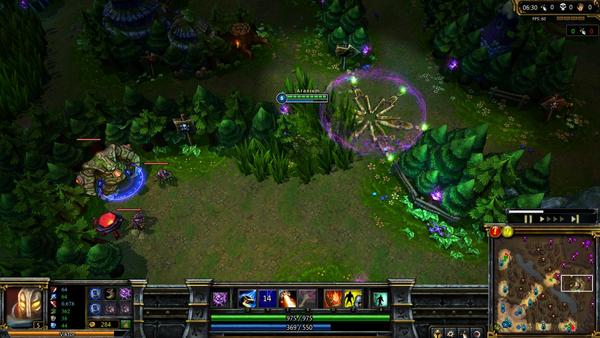 解决方案:不要让这个怪物赢得游戏!每当他使用过Q或是打算补刀时就上去干扰他。尽量闪避技能。一旦到达6级,你的混乱风暴能干掉他,最好是在他打技能连击的时候用R打断他,这样他就会进退两难了。