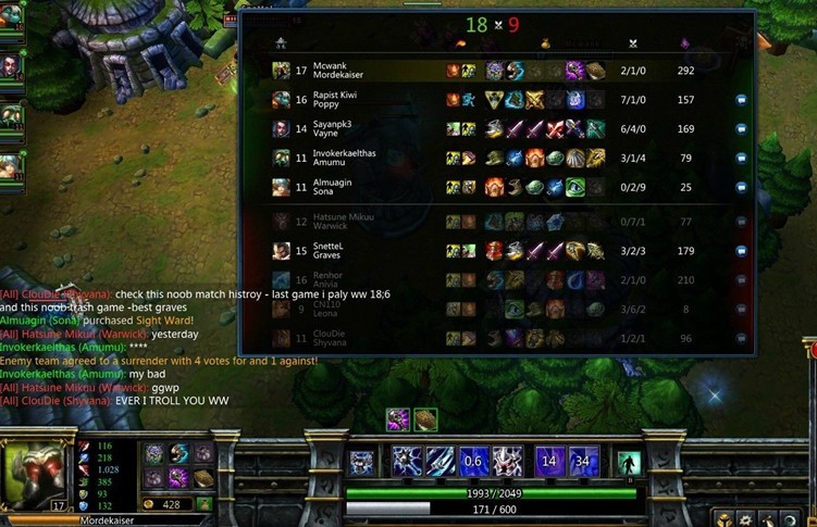 这时的铁人非常可怕,敌人会努力击杀你,你的工作就是不让其得逞,起码在你干掉对面ADC前不让他们得手。如果你死前没有拉上起码一个敌人carry垫背,那么你不是一个合格的铁人玩家。