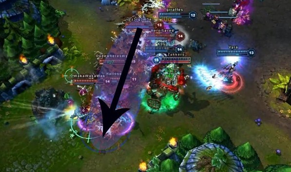 5-6:其实我觉得4-5的时候兰博就可以稍微玩的凶残点儿,如果顺利度过1-4级,没落等级和补兵,血线也不错的话,可以尝试骚扰对方了…不过上单这时候是最容易爆发冲突的时候,没有血线优势和打野帮助的话,不要太得瑟。