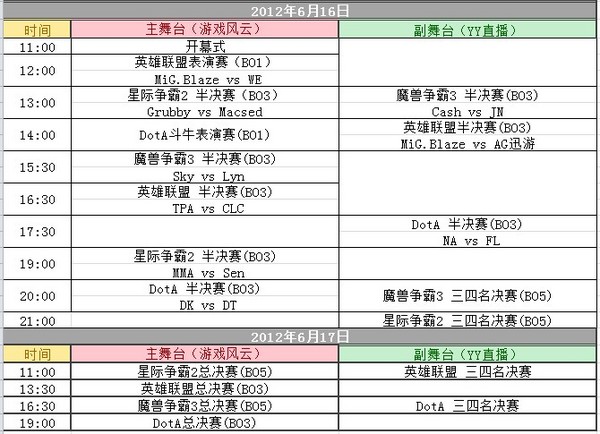 原定于17:30副舞台进行的DOTA半决赛 NA vs FL,与14:00进行的英雄联盟副舞台直播场次调换。