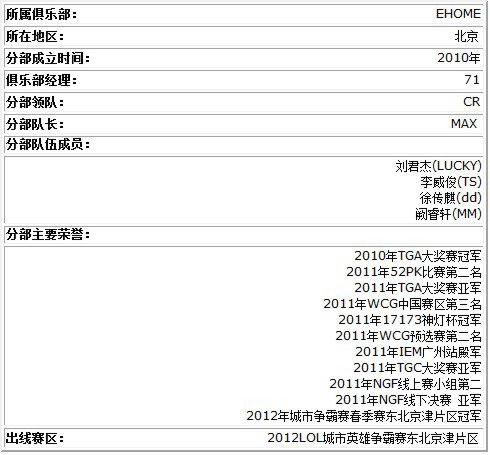 - (2012-09-14) 英雄联盟Ehome战队成员介绍
