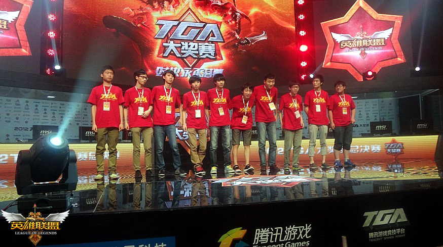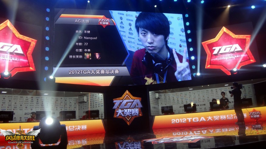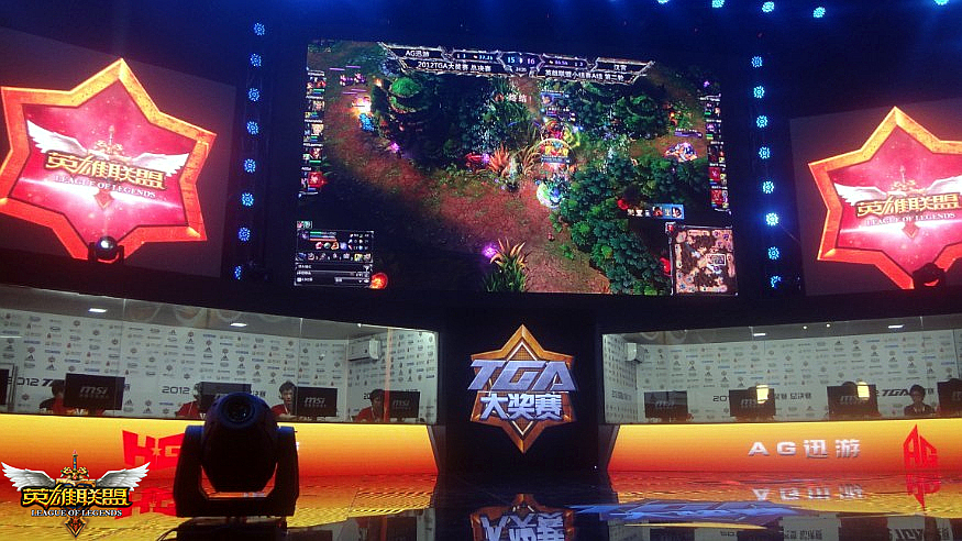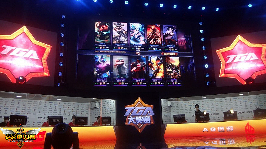 经过为期三个多月的激烈角逐,由全新英雄对战网游《英雄联盟》(简称:LOL)主办的2012年“城市英雄争霸赛”全国总决赛今日(6月21日)在TGA的舞台全面打响。21:00—22:00华北赛区冠军“汉宫Clan”与西南赛区冠军“AG迅游”展开了激烈对决,最终AG迅游力克汉宫Clan获胜。
