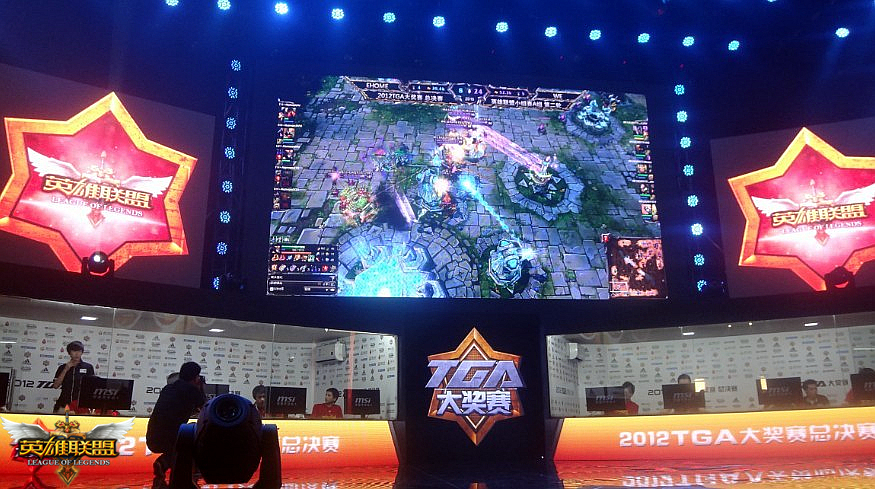 经过为期三个多月的激烈角逐,由全新英雄对战网游《英雄联盟》(简称:LOL)主办的2012年“城市英雄争霸赛”全国总决赛今日(6月21日)在TGA的舞台全面打响。23:00—24:00老牌强队华东赛区冠军“WE”与东北京津赛区冠军“EHOME”在小组赛狭路相逢,经过精彩对抗后,WE获胜。