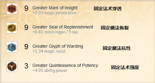 这是Forggen的符文页,他牺牲了法穿换来更多魔抗,下面这套符文是常见的AP符文。
