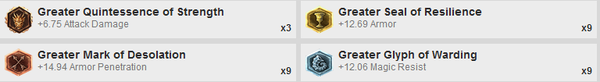 你需要护甲穿透,配合天赋21点护甲穿透能让你的Q出门就有巨大的伤害。其他就都是标准ADC符文了。