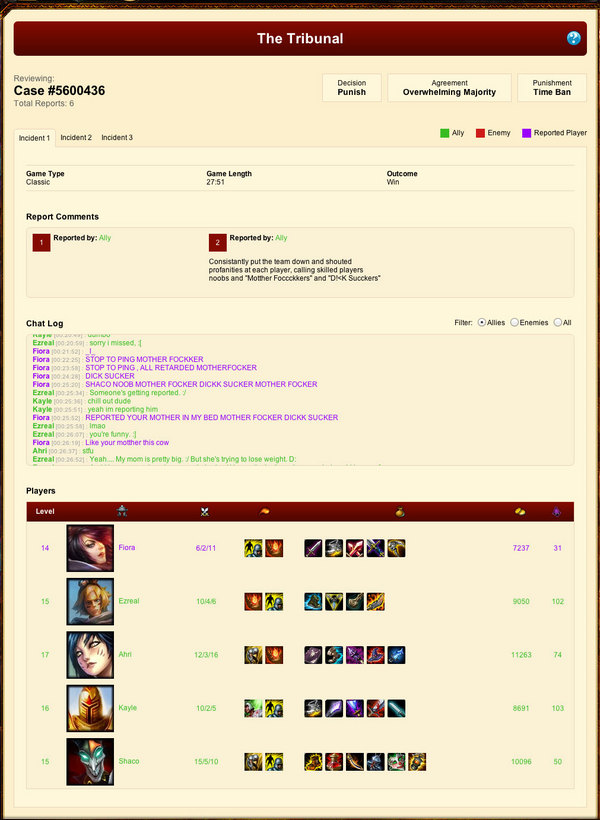 新的审判系统将在未来1~2周内上线,在新系统上线之前玩家被判决的话还会受到一封电子邮件。因为这是全新的系统,所以我们不会对过去的旧案件补发举报卡,下面是一个玩家将看到的案件细节文件。