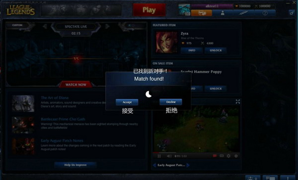 所有玩家在匹配成功时,都会看到新的选择框。在所有玩家完成选择之前,不会进入英雄选择画面。