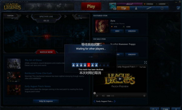 3.队伍中的一个或者多个玩家选择“拒绝”,或者某人没有进行选择,全队都会退出队列并且返回队伍大厅