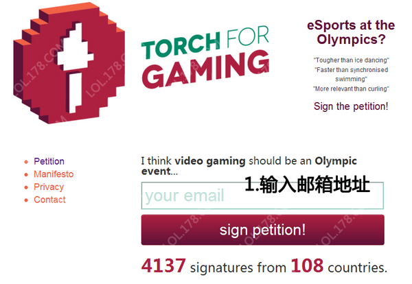 但是电子竞技怎么能成为奥运会的正式比赛项目呢?丹尼尔·格斯拉克(Daniel Grzelak)在他的网站上已经发起了一项签名运动:提议让《星际争霸2》与《英雄联盟》为代表的电子竞技成为奥运会的夏季比赛项目。如今这个网上请愿书已经有超过24个国家的1500人签名,丹尼尔·格斯拉克(Daniel Grzelak)希望让所有玩家一起,让电子竞技走进奥运会。