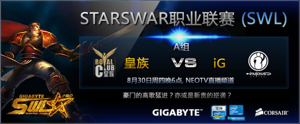 技嘉科技冠名的技嘉SWL,由全球最大的芯片制造商INTEL以及全球高端硬件解决方案厂商海盗船联合赞助。旨在推动中国电竞的良性发展,形成选手健康发展的生态圈。普通玩家除了观赏职业玩家的精彩比赛以外,每周末也可参加SWL业余组杯赛(前RTS杯赛),赢得奖金和积分并逐渐在职业圈崭露头角。脱颖而出的你将会登上职业的舞台,翱翔在更加广阔的天空。