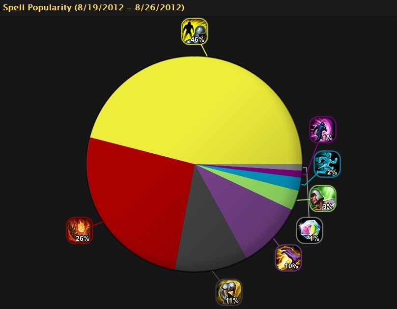 召唤师的使用情况较上周变化不大,进攻性的召唤师技能相较与其他召唤师技能来说更受玩家的欢迎。