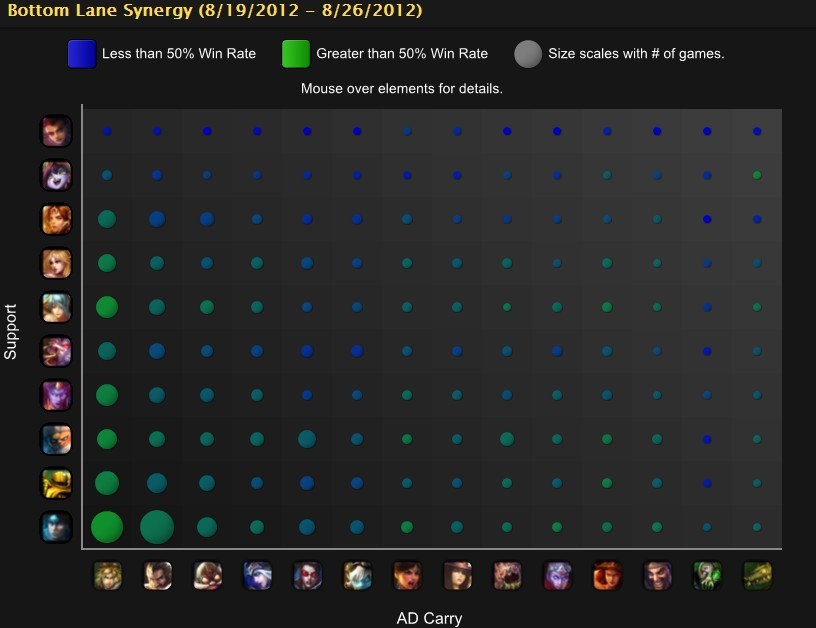 厄加特的削弱对他的影响非常大,而寡妇重做后的表现非常不好,Riot也在新版本中对她进行了增强,小炮与巨魔对团队支持要求很高,单人匹配时遇合适的人对他们的胜率影响很大。